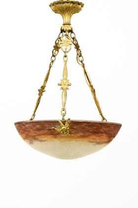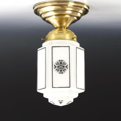 Deckenlampe mit Glasschirm im Wiener Jugendstil.