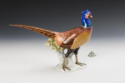 1x Fasan, BING & GRÖNDAHL, Modell-Nr. 2389, Entwurf um 1920 von Svend Olfert Neumann Jespersen (1895-1985) (H 20,5 cm). / 1x Rebhuhngruppe, ROSENTHAL, Modell-Nr. B 916, Entwurf um 1936 von Hugo Meisel (1887-1966), bezeichnet (H 18,5 cm). / 1x Ente, ROYAL COPENHAGEN, 1 Schleifstrich, Modell-Nr. 933 (H 7 cm)