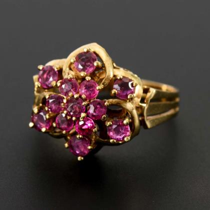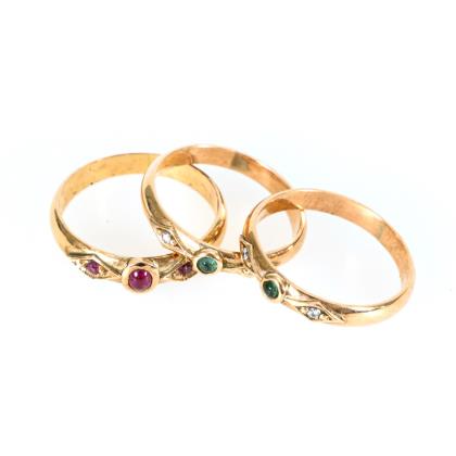 Schmale Schienen mit Rubin- und Smaragdcabochon und kleinen Diamanten