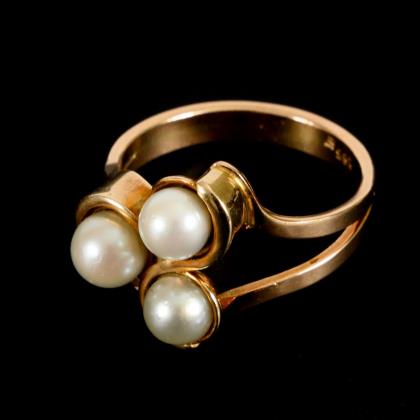 3 gefasste Zuchtperlen, zwischen schmaler Schiene