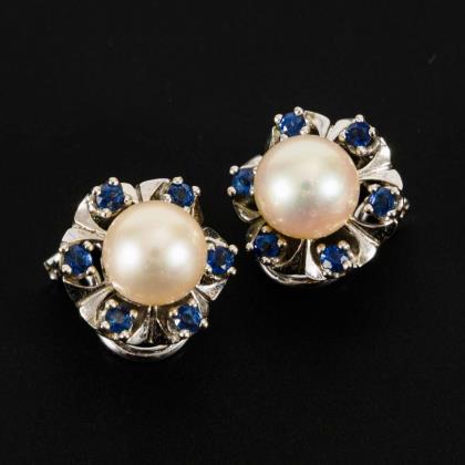 Ohrsteckerpaar mit Saphiren und Zuchtperlen.