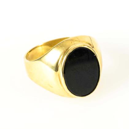 In geschlossenem Ringkopf eingelegte Onyxtafel zwischen breiter Schiene