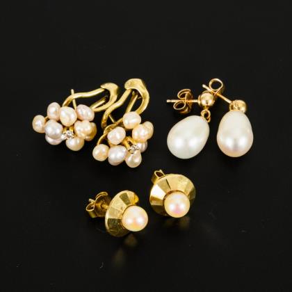 3 Ohrsteckerpaare mit Zuchtperlen.