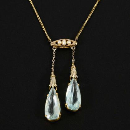 Jugendstilcollier mit Aquamarinen? in altem Etui.