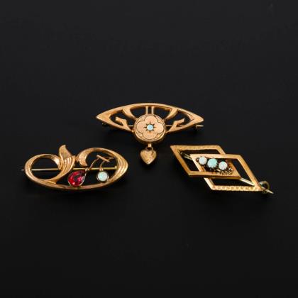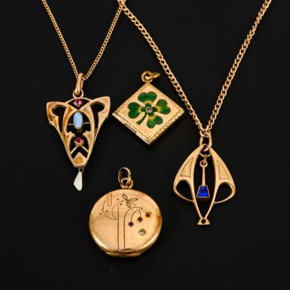 Jugendstil-Schmuckkonvolut um 1900.