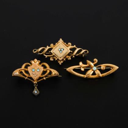 4 Schmuckstücke um 1900.