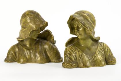 Paar Jugendstil-Frauenbüsten. Wiener Manufaktur Friedrich Goldscheider.