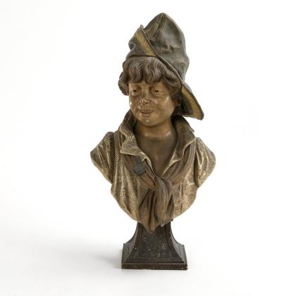 Frühe Jugendstil-Büste "Italienischer Knabe Alvalore". Wiener Manufaktur Friedrich Goldscheider.