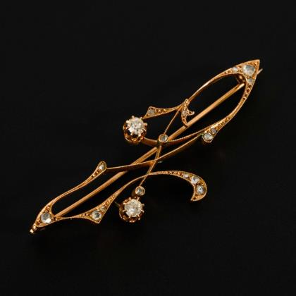 Jugendstilbrosche mit Altschliffbrillanten und Diamantrosen.