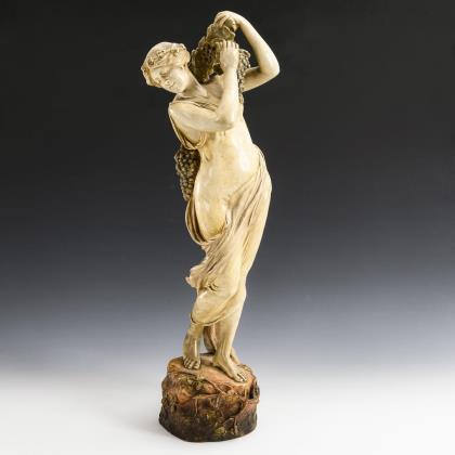 Große Jugendstil-Figur: Bacchantin. Wiener Manufaktur Friedrich Goldscheider.