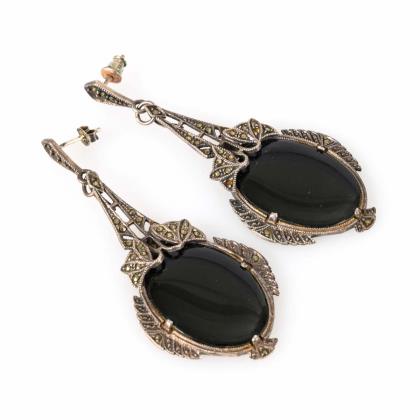 2 Anhänger, 3 Broschen z.T. reliefiert, mit Montierungen und Schwarzemail. Hakenverschlüsse