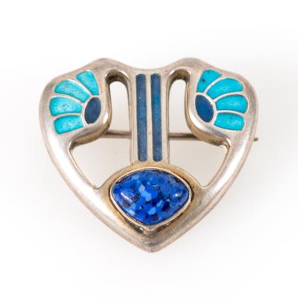 Jugendstilbrosche mit Email und Farbstein Heinrich Levinger, Pforzheim.