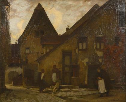 KERN, Melchior (1872 Mainz - 1947 München). "Abend am Dorfbrunnen / Winterhausen".