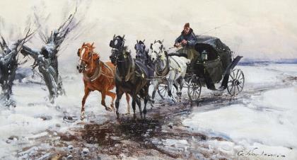 WASILEWSKI, Czeslaw (1875 Warschau - 1947 Lodz). Kutschfahrt.