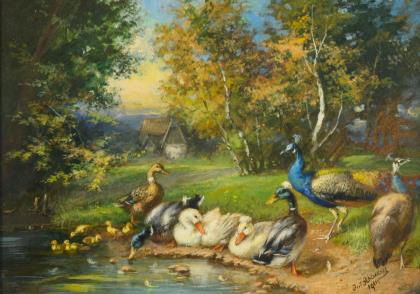 SCHEUERER, Julius (1859 München - 1913 Planegg). Entenstück.