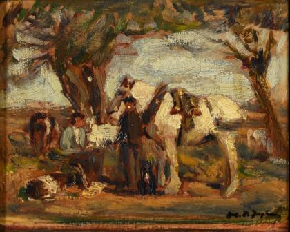 JUNGHANNS, Julius Paul (1876 Wien - 1958 Düsseldorf). Reiter bei der Rast.