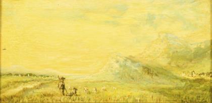 SCHLEICH, Robert (1845 München - 1934 ebd.). Bergige Landschaft mit Hirte.
