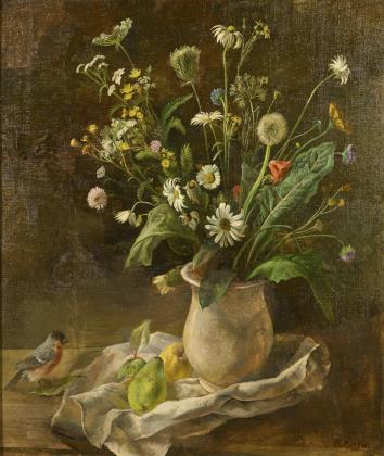 REEGER, Hans Rudolph (1883 Kiel - 1965). Blumenstillleben mit Dompfaff.