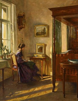 BREDT, Ferdinand Max (1860 Leipzig - 1921 Ruhpolding). Dame im Interieur.