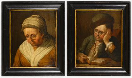 Porträt eines Mannes mit Brille und Buch sowie einer Frau mit Brille