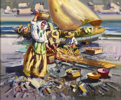 GONZALES, Jose. Fischerleute am Strand.