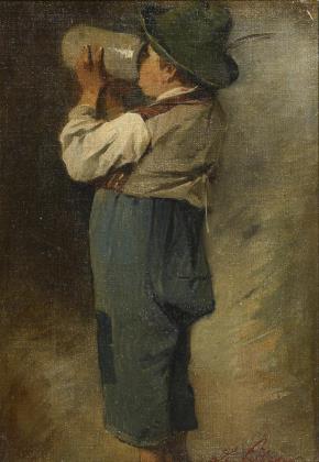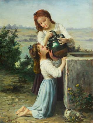 Die beiden Kinder beim Trinken vor weiter ebener Landschaft | Nachtrag 21.05.2024: Kopie nach Adolphe William Bouguereau (1825 - 1905) "An der Wasserquelle"