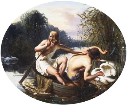 GENREMALER ERSTE HÄLFTE 19. JAHRHUNDERT. Angriff auf ein Schwanen-Nest.