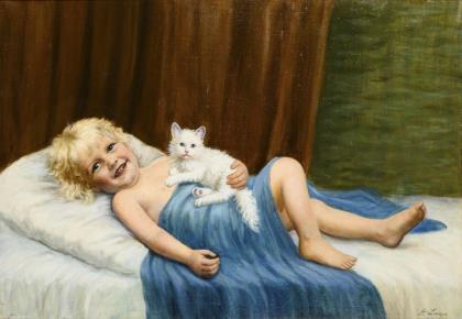 LAMPE, Amanda (1872 - 1945). Kind und Katze.