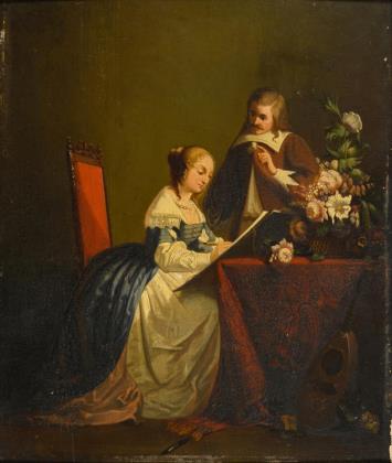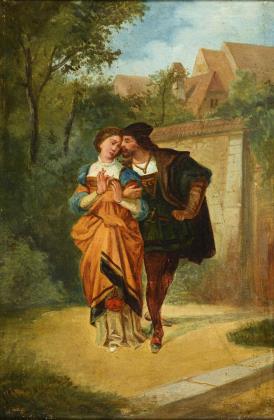 GEIGER, Richard (1870/72 Wien - 1945 Budapest). Galante Ballszene mit Herrn und Kolumbine.
