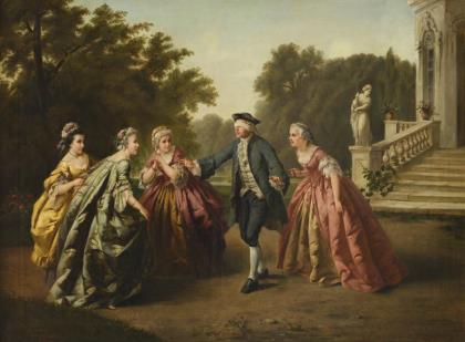Galante Ballszene mit Herrn und Kolumbine
