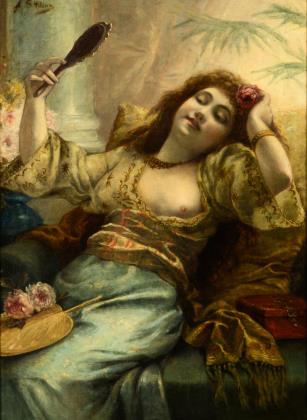 STEVENS, Agapit (1848 Brüssel - 1924 Watermael-Boitsfort/Watermaal-Bosvoorde). Schöne im Spiegel.