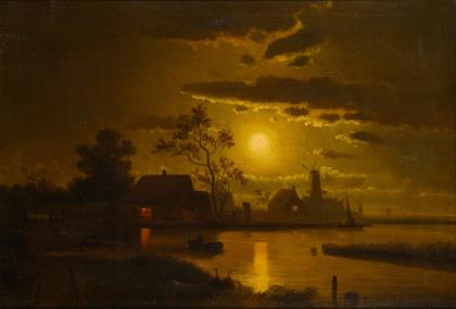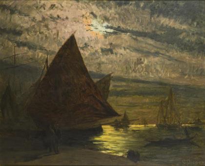 GENENGER, Theodor. Küstenlandschaft im Mondschein.