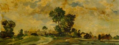 FRANZKE. Landschaft mit Stadtsilhouette.