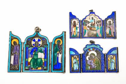 3 emaillierte Miniatur-Ikonen.