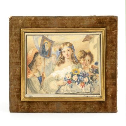 Biedermeier-Miniatur: Marienprozession.