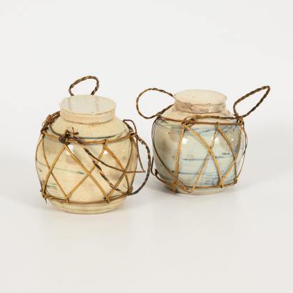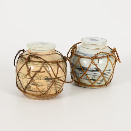Paar Ingwertöpfe in Basthalterung.