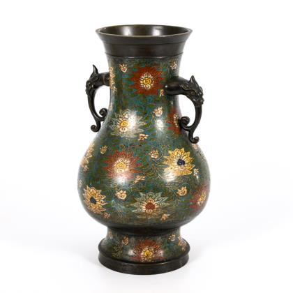 Große Cloisonnévase mit Henkeln.