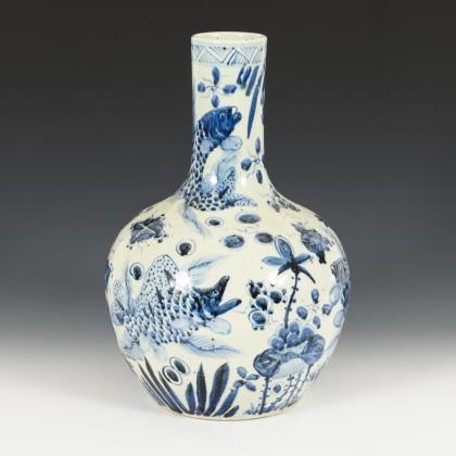 Große blaue Porzellanvase mit Unterglasur-Blaumalerei.