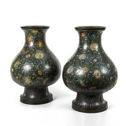 Paar sehr große Cloisonnévasen.