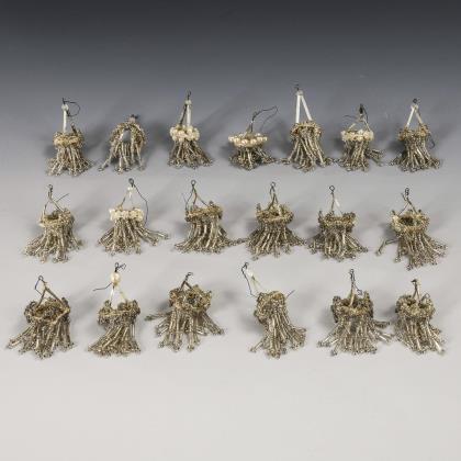 19 Teile Baumschmuck in Gablonzer Art, aus silberfarbenen Glasperlen und Stäbchen gefertigt