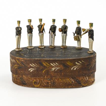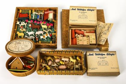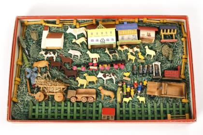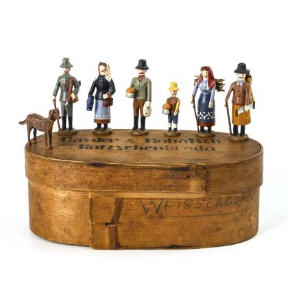Konvolut Grulicher Figuren in alter Spanschachtel.