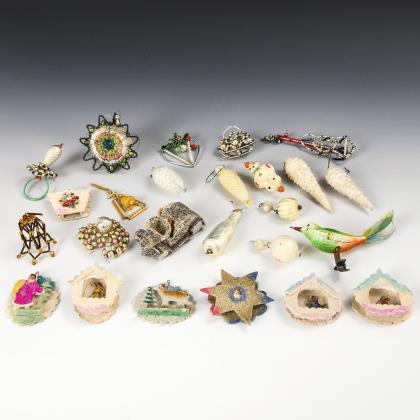 Ca. 25 Teile verschiedener Baumschmuck: 8x Pappe, 7x Gablonzer Schmuck, 8x Glas und 2x Watte