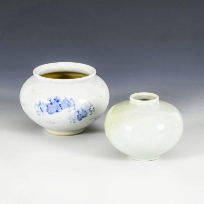 Künstlervase - weiße Vase mit Blütenrelief. Prof. Shin Sang-Ho.
