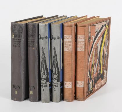 Gebundene Zeitschrift der Jahrgänge 1914-16, in gestalteten Leineneinbänden