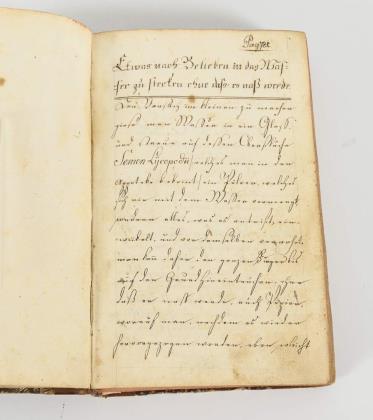3 Teile in einem Band. Gespräch zwischen Pferd und Fliege, 106 Seiten. "Zweytes Gespräch zwischen einer Mauß und einen Papagay", 122 Seiten. "Drittes Gespräch zwischen einem Bären und einer Grille", 80 Seiten, danach fehlen Seiten. Jünger nachgebunden in einem Einband mit Holzstruktur, Titelblatt kopiert. 2 Abbildungen