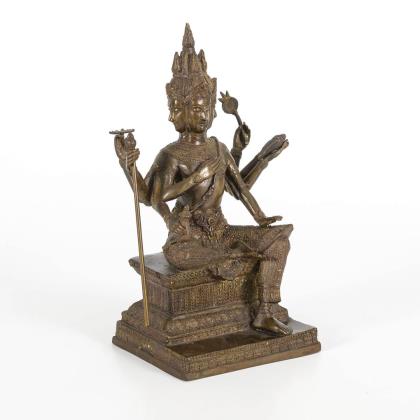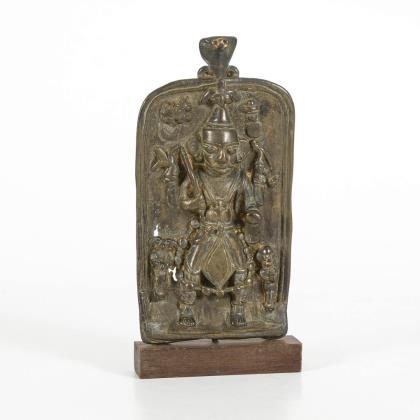 Reiterdenkmal des französischen Königs (François Ier, le Roi-Chevalier, 1494 - 1547), der im prächtigen Kostüm mit Federhut sowie angelegter Collane des Ordens vom Goldenen Vlies auf dem temperamentvollen Hengst reitet. Sehr detailliert ausgeführter Guss mit zahlreichen Appliken
