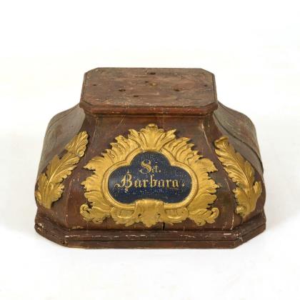 Großer Sockel einer Heiligenfigur "Sct. Barbara".