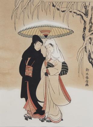 Reprint nach Suzuki Harunobu (1725-1770 Edo). Seitlich signiert, rückseitig kleiner Stempel. Neuwertiger verglaster Wechselrahmen