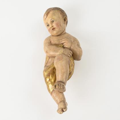 Mit enganliegenden Windeln bekleidetes Jesuskind, das ursprünglich in einer Weihnachtskrippe lag