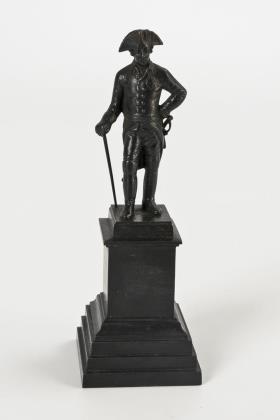 Standbild des "Alter Fritz" genannten Königs von Preußen in Uniform auf hohem Sockel. Entwurf wohl von August Kiss in Anlehnung an Schadow bzw. Rauch